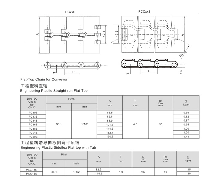 工程塑料直输、曲输平顶链